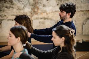 Claustro es un viaje diseñado por estaciones: movimiento consciente, yoga, acción poética y diálogo.